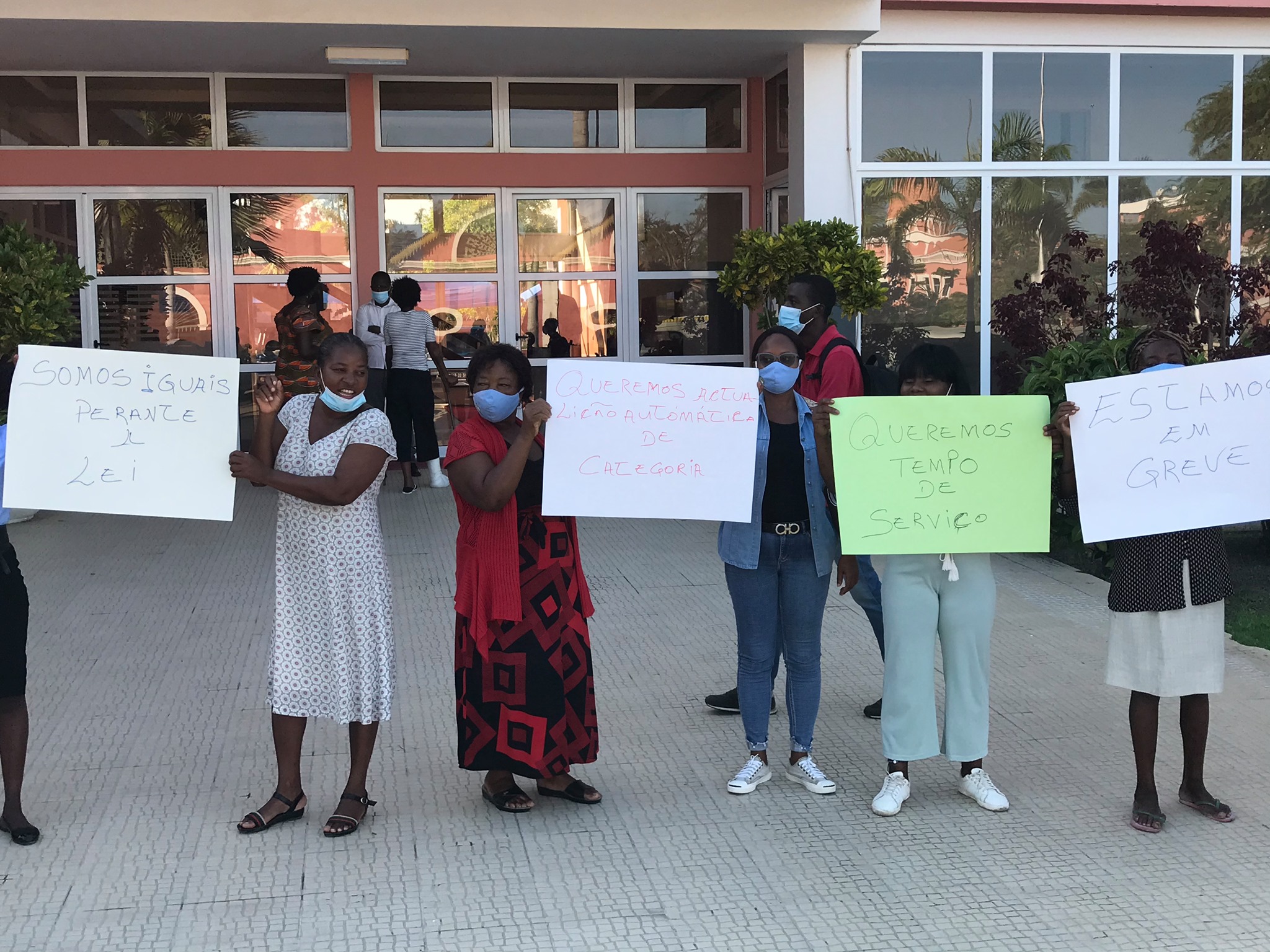 "O mais importante é resolver o problema do povo, queremos actualização, os concursos públicos não resolvem nada", podia-se ler nos cartazes.